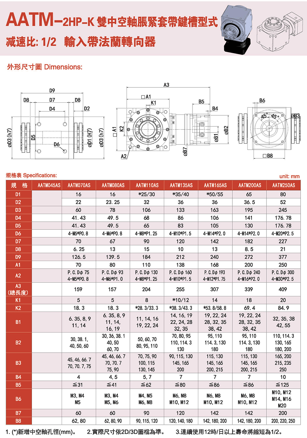 AATM-2HP-K中空軸脹緊套帶鍵槽型式 輸入帶法蘭轉向器