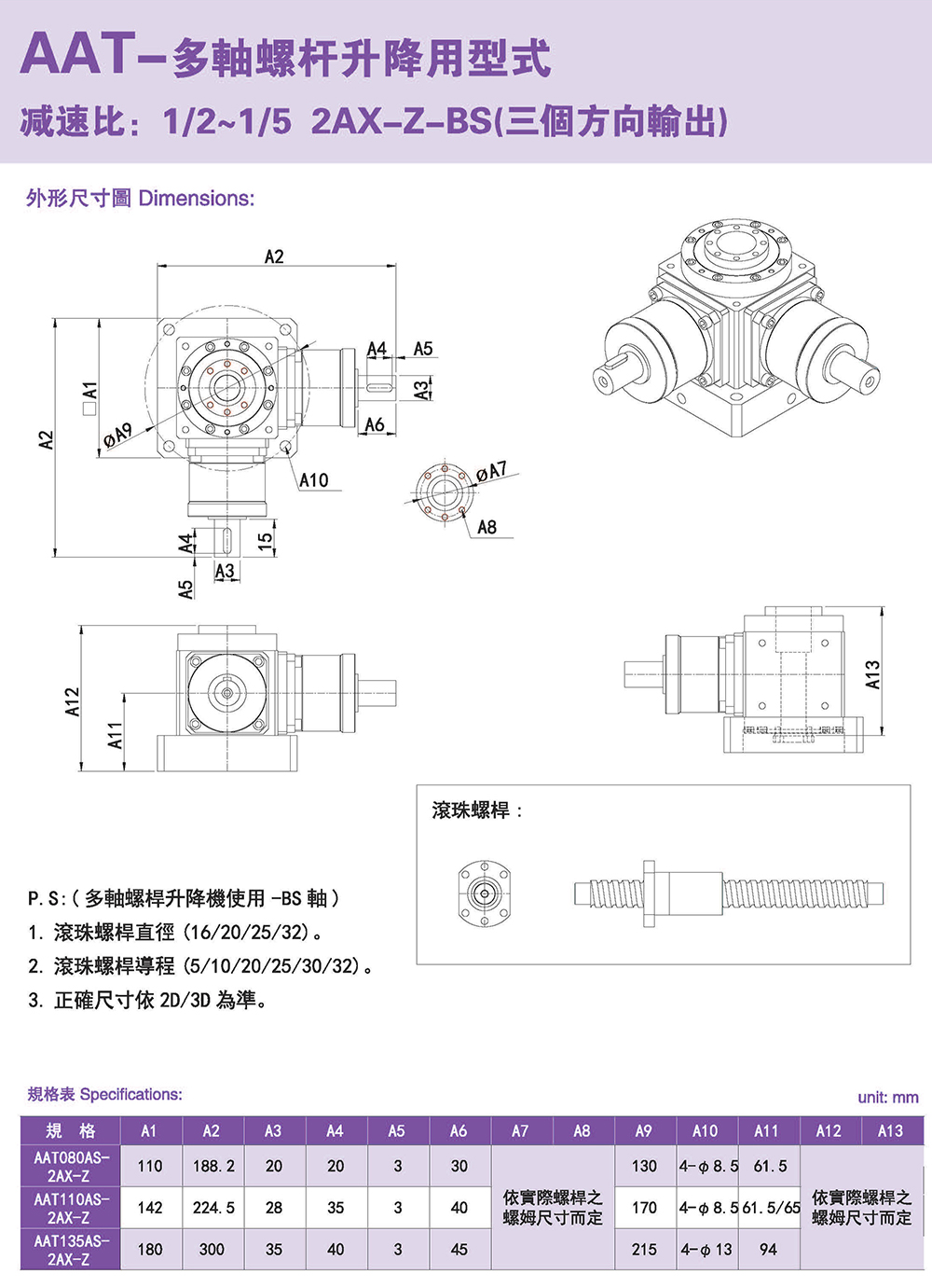 多樣化:輸出軸種類多樣化,有單出力軸型、雙出力軸型、中空軸型、中空法蘭型、中空軸錐形緊迫性、螺桿直線型、螺牙直線型。