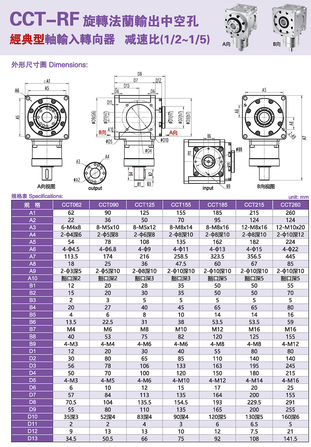 CCT-RF旋轉(zhuǎn)法蘭輸出中空孔 經(jīng)典型軸輸入轉(zhuǎn)向器
