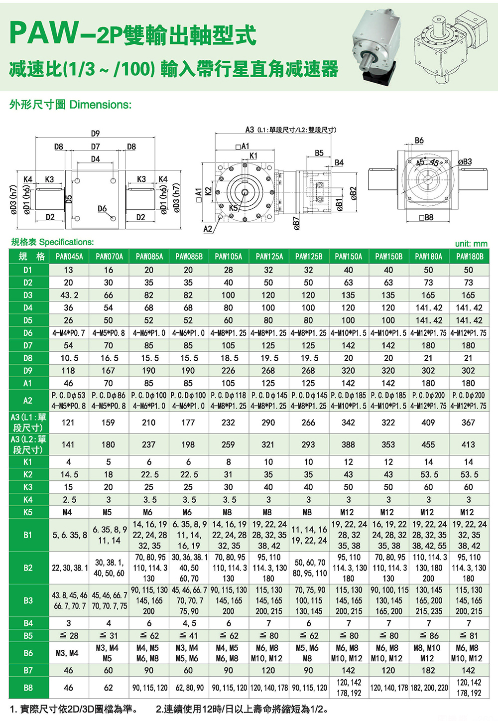 減速比:單段1:3~1:10雙段:1:12~12:100