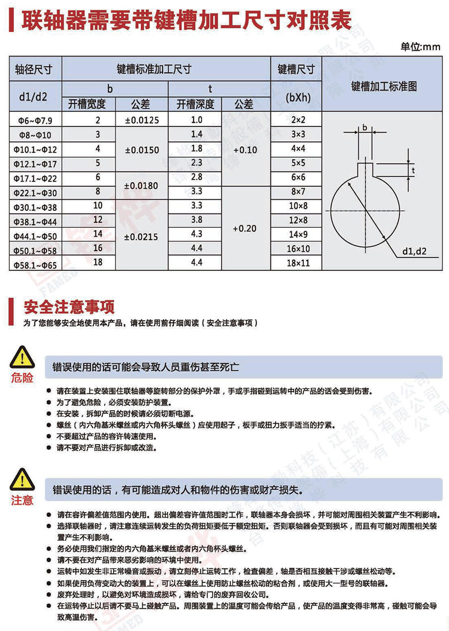 聯(lián)軸器需要帶鍵槽加工尺寸對照表