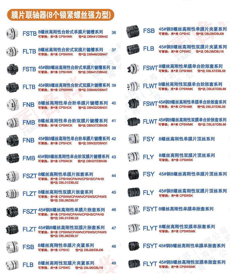 膜片聯(lián)軸器(8個(gè)鎖緊螺絲強(qiáng)力型)種類