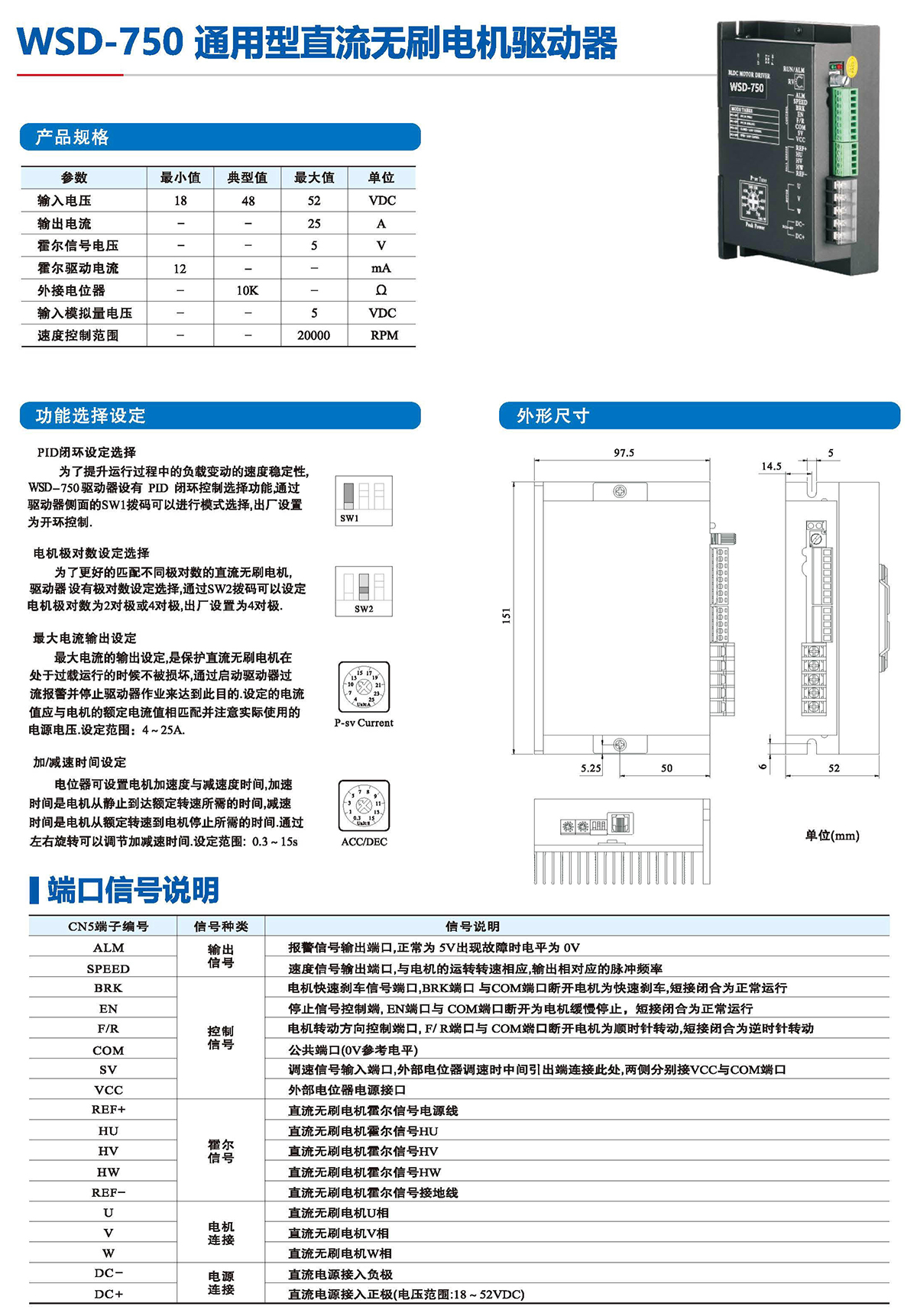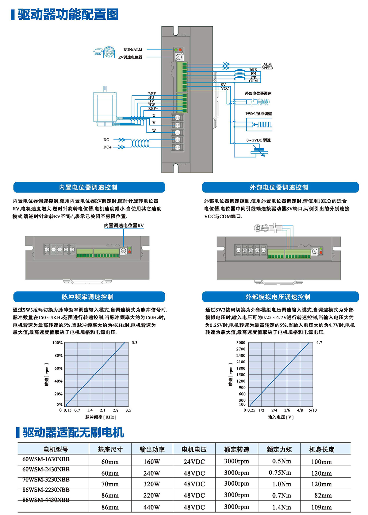 ●可驅動小于70W無刷電機
