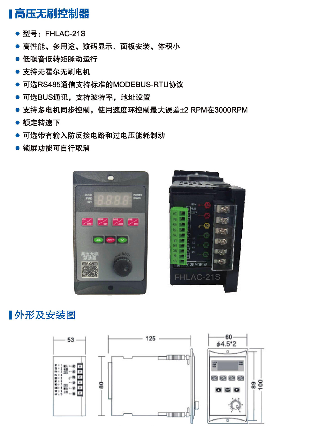 可選帶有輸入防反接電路和過(guò)電壓能耗制動(dòng)鎖屏功能可自行取消。