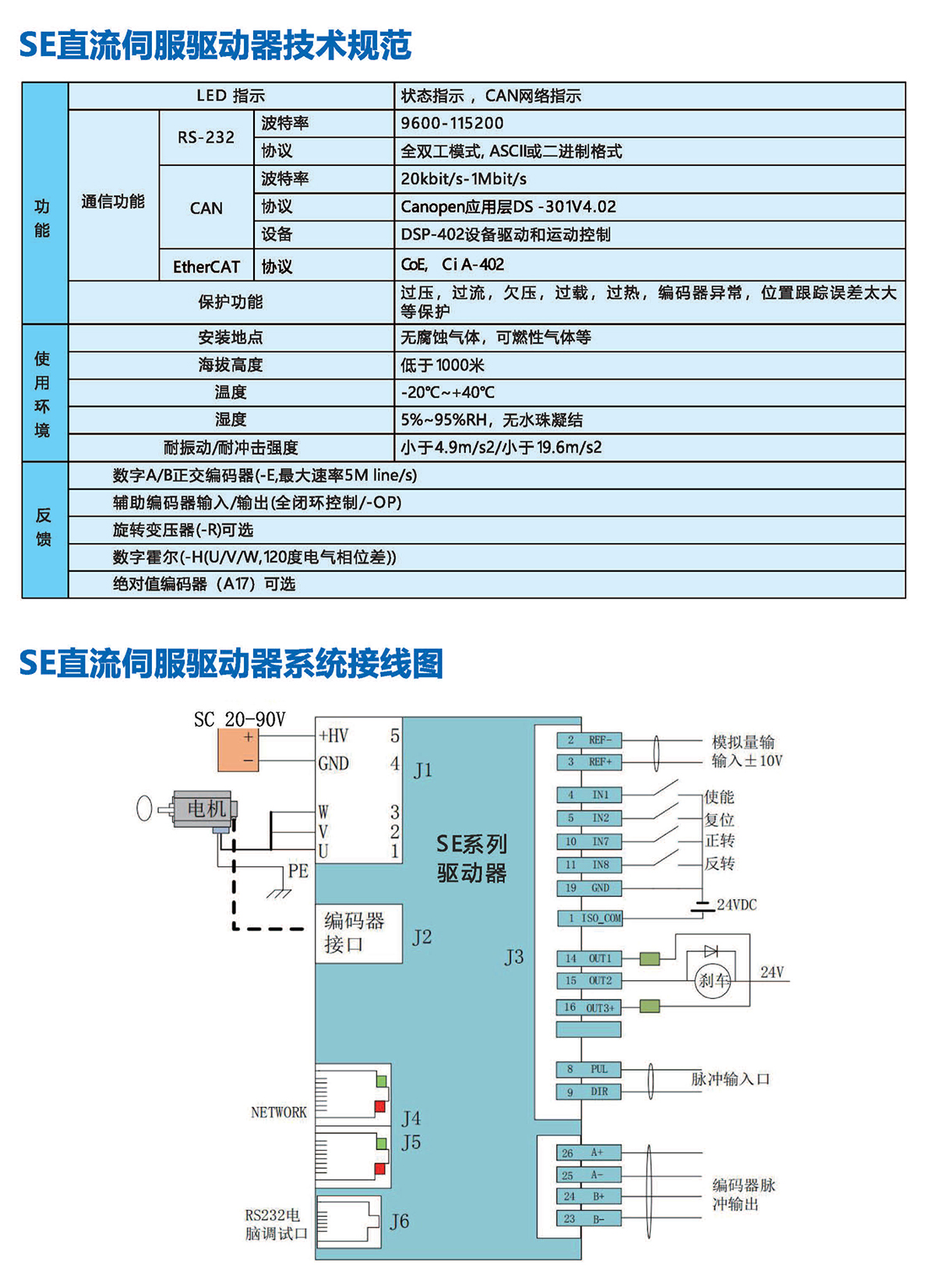◆可編程保護:位置誤差,過流,過壓或欠壓, 12t ,輸出短路過載等多方位保護功能;