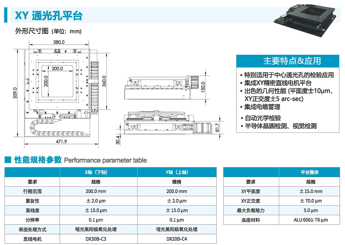 ●出色的幾何性能(平面度士10um,XY正交度土5arc-sec)