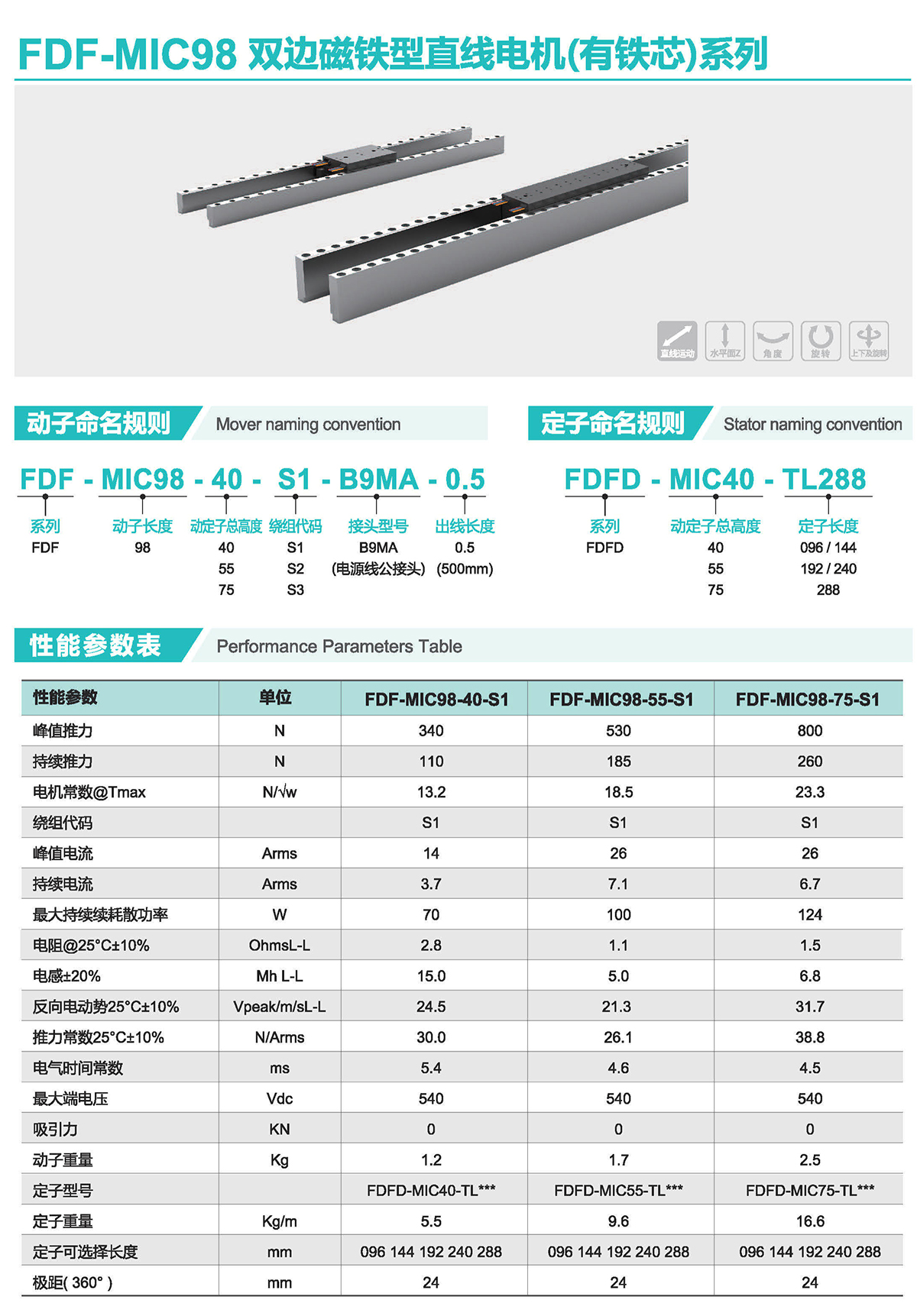 FDF系列雙邊磁鐵型直線電機(jī)(有鐵芯)